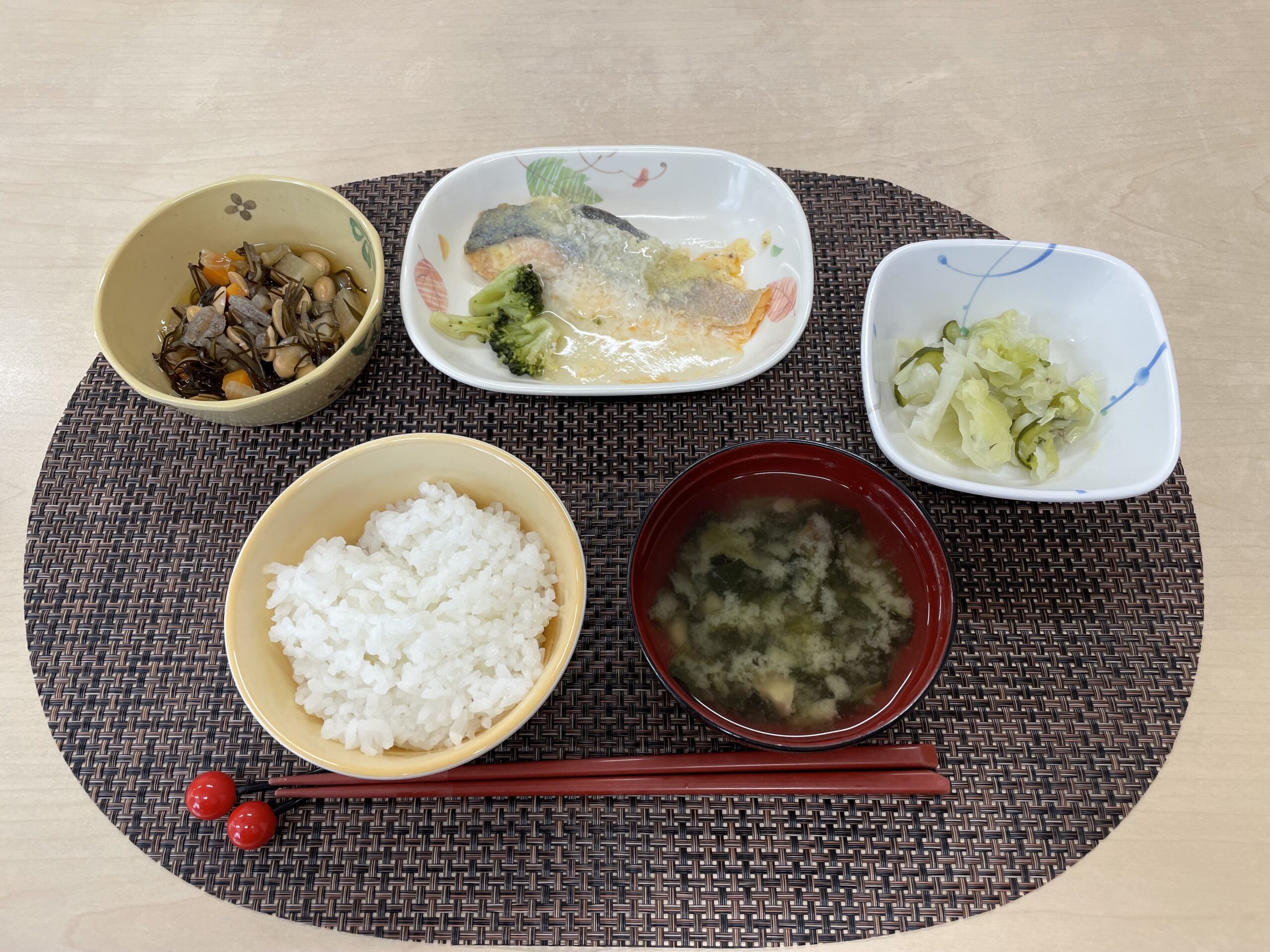 特別養護老人ホーム併設のデイサービスならではの強みの一つとして、管理栄養士監修によるバランスの良い出来立ての昼食を毎日厨房からお届けします。通常のお食事はもちろん、刻み食やペースト食などの食形態にも対応し、また、塩分やカロリーなどの制限食にも対応が可能です。