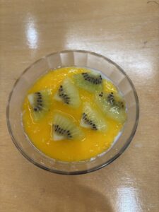 少し時間がたって様子を見にいくと提供する半分の牛乳寒天が固まってなかった( ゚Д゚)