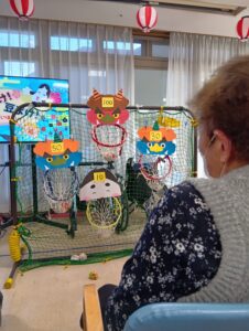 フクト21 デイサービス アイリスそのほかデイサービス 節分大会!! 2026.02.07 2026.03.16 こんにちはデイサービスアイリスです 節分ということでデイでは節分のゲームをやりました! 豆(お手玉)を鬼に当てて点数を競いました! 優勝者にはメダルを参加者全員にはおやつに甘納豆をプレゼントしました! こういった季節のレクリエーションで季節を感じて貰いたいです 来月はひな祭り 何をやるかはお楽しみです♪